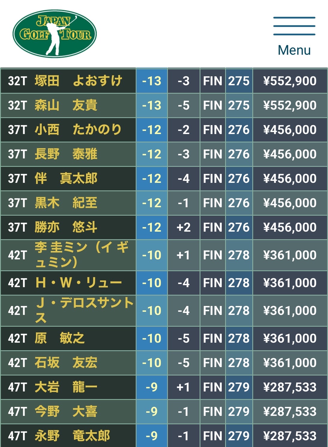 予選通過し最終42Tでツアーを終えました。